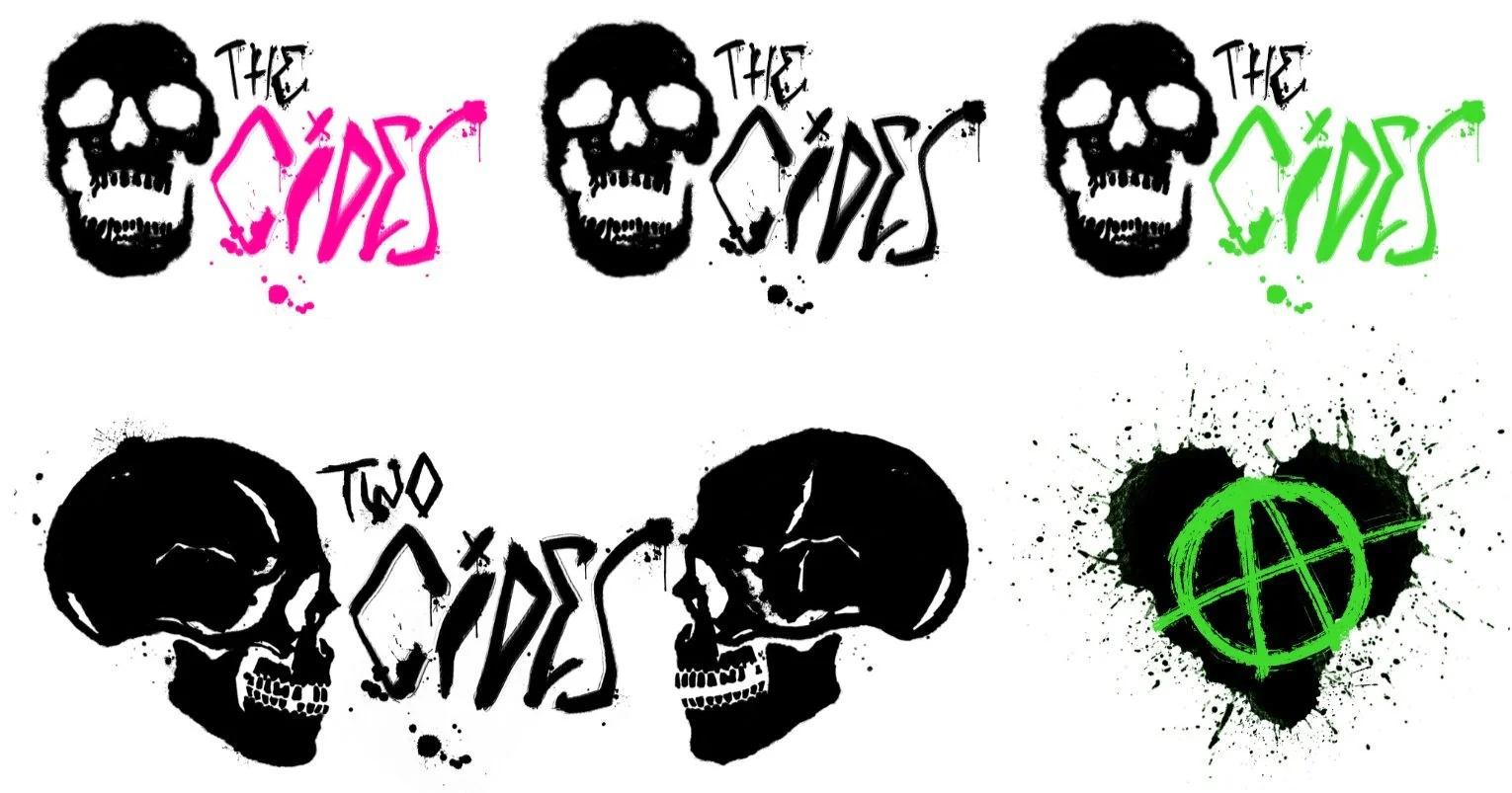 The founder Paul is the former co-founder of The Molesters back in the days of original punk. We have created a blog page called Two Cides (as in there are 2 sides to every story). Glen created the logo, using lettering that had already been created by Paul’s friend Melina. Glen strengthened the lettering up and introduced the skull (now known as Ebenezer, the band’s mascot). He has also created the cover artwork for the songs. It’s been a wonderful opportunity to use strong fluorescent colours and bold typography. I love the ripped up feel of punk design, it has an immediate impact and is the opposite of sleek and slick.